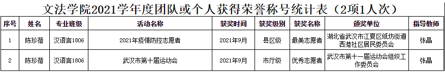 2021学年度团队或个人获得荣誉称号(部分)
