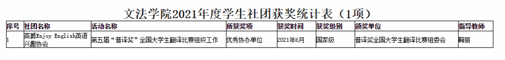 2021年度学生社团获奖(部分)