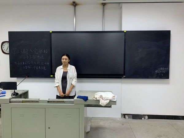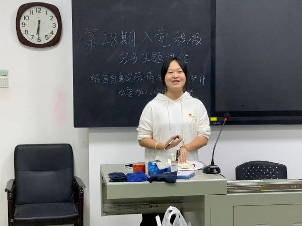 而后入党积极分子纷纷登台发表感言,回忆起从小到大做出的向党组织靠拢的行为。“不驰于空想,不骛于虚声”有的学生退役,在军队的期间,她体会到铁血军情,对组织祖国的热爱,对人民的赤胆忠心,退伍不褪色;有的学生积极参与志愿者活动,关爱孤寡老人深入人民中去,到偏远山区支教不放弃任何一位星星之火的萌芽等。在向党组织靠拢的过程中,他们在困难中保持坚定的信念和集体力量,在实践中提升自己,坚守初心,不忘来时路。