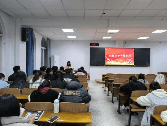 党建会纪检部部长李丹清在会议中深入而详尽地解读了入党积极分子考核制度,该制度旨在通过一系列严格而全面的评估标准,激励并引导入党积极分子持续提升个人综合素质,坚定理想信念,积极向党组织靠拢。她还进一步指出,考核结果的公正性与客观性将得到严格保障,并将作为衡量入党积极分子是否具备成为发展对象资格的重要依据。她鼓励所有入党积极分子珍惜机会,以饱满的热情和扎实的行动迎接挑战。