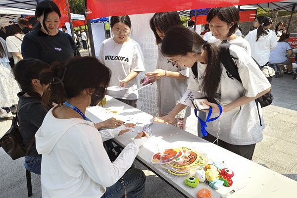 活动开始后,前来进行游戏挑战的同学络绎不绝。同学们首先抽取纸条,再依次完成纸条上的游戏任务。例如在“立瓶子”关卡中,大家需要将瓶子抛起并保证水瓶能够稳稳地立在地面上,成功三次即挑战成功。完成游戏的同学不仅能够得到yL23411永利的特色盖章,还能挑选一份小礼物。