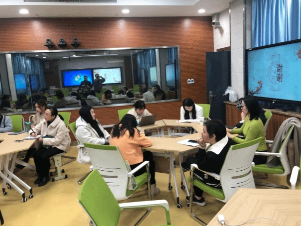 接着,范教授及团队进行了课后反思,从备课、磨课、试讲到上课谈了自己的收获和感受。老师们在个人反思中介绍了自己的设计思路,并就授课过程中的收获与思考,比如课堂提问的处理和德育思想的渗透如何能做到润物无声等方面进行了反思,他们的思考也引发了所有与会老师的深层次研讨。