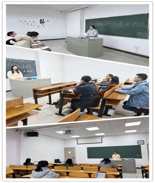 复试面试非常考验同学们的专业素养和临场应变能力。此次模拟还原真实的复试场景,帮助同学们了解更多面试技巧,增强信心,为即将到来的研究生复试奠定了基础。本次面试模拟采取开放式面试的形式,增设了观众席,同学们按照抽签顺序轮流面试,每位同学在参加模拟面试的过程中,不仅能够亲身感受整个考研面试的正规流程,同时还能观摩、借鉴其他同学的表现,取长补短,提升自我。王方国和罗荣菁老师针对英文自我介绍和综合素质考察进行专项评审,其他英语系老师在翻译组、学科英语和农学组,根据同学们报考的专业方向及专业特长进行提问,并对同学们在面试中出现的问题进行了耐心细致的指导。同学们也就自己的困惑向老师们寻求帮助,收获满满。模拟面试结束后,老师再次向学生强调了复试模拟的流程,提醒学生保持良好心态。