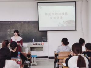 讲座上,张园园老师从教师职业认知、教学能力、仪表仪态、言语表达、思维品质等教师基本素养和教育教学实践能力等方面进行了详细讲解和指导。并以具体课程教学为例,结合自己幼儿园教学工作实际,从幼儿园活动设计、保育能力培养、家校联系等环节,分享了自己对幼儿园教学内容的处理,并强调了幼儿园教学过程中的着重点和注意事项。最后,通过对同学现场片段教学的指导和调整,进一步强化学生专业技能。