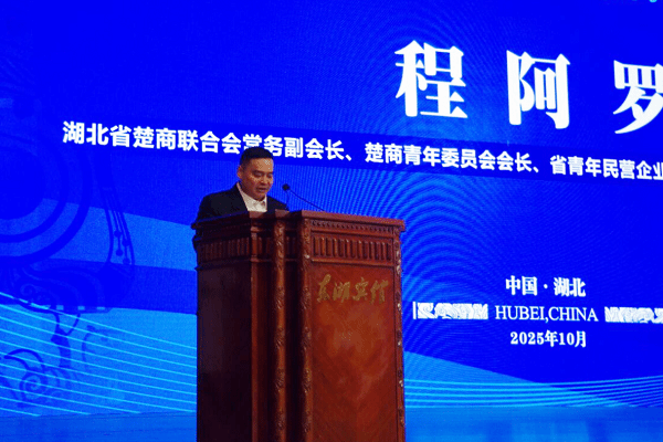论坛在湖北省楚商联合会常务副会长、程力汽车集团董事长程阿罗的致辞中拉开帷幕。程阿罗以“金秋十月,荆楚大地硕果累累”开篇,深情回顾楚商“筚路蓝缕、开放包容”的精神传承,呼吁青年一代成为楚商精神“最坚定的传承人”。湖北省委统战部副部长、省工商联党组书记庄光明在讲话中提出三点期望:期望青年一代聚焦“建成支点”展现青年作为、坚持健康成长开拓全球视野、筑牢理想信念践行责任担当。共青团湖北省委书记刘治田系统介绍了服务青年企业家的“青创园”、“青创贷”、“青创板”等七大创新创业服务体系。他们充满激情的讲话,在现场引起热烈反响,深深感染了在场的文法学子。