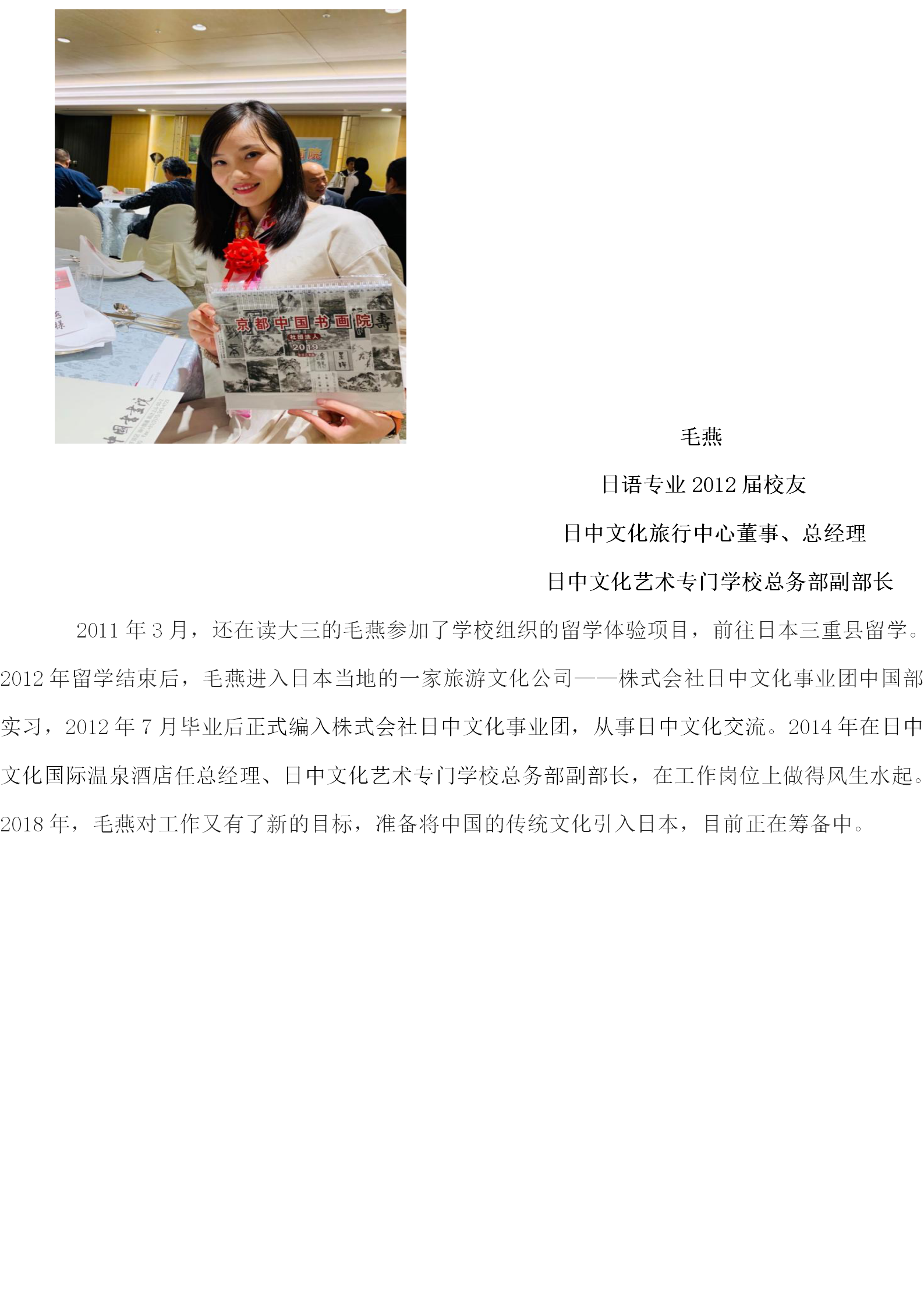 日中文化旅行中心董事及总经理、日中文化国际温泉酒店总经理、日中文化艺术专门学校总务部副部长