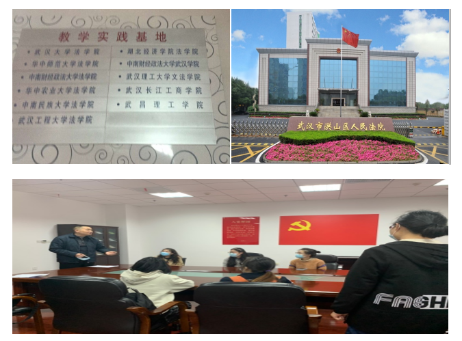 法学系于2016年4月与武汉市洪山区人民法院建立实习合作关系,该实习基地适用于法学专业,主要用于组织学生进行专业实习和毕业实习等实习活动,也用于组织学生进行庭审观摩、案卷归档学习等实践活动。