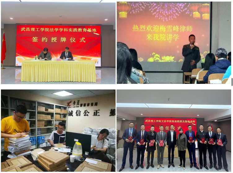 法学系于2016年7月与湖北省今天律师事务所建立实习合作关系,并于2021年11月更新了与湖北今天律师事务所的合作协议,在今天律所建立了法学学科实践基地。该实习基地适用于法学专业,主要用于专业实习和毕业实习。同时聘请优秀律师担任实践教学导师,开展实践教学合作活动。